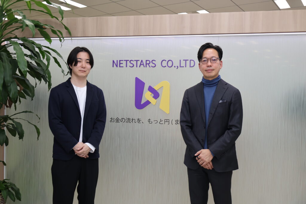ネットスターズは、主力事業であるキャッシュレス決済事業にプラスアルファの付加価値として、店舗のさまざまな課題を解決するDX(デジタルトランスフォーメーション)サービスを手掛けています。今回は、ネットスターズでDX分野を担うソリューション事業部の事業部長 梅元 建次朗と、PM(プロジェクトマネージャー)として活躍する佐藤 耀介の二人に、ネットスターズで働くことの魅力や、PMとして培える経験について話を聞きました。